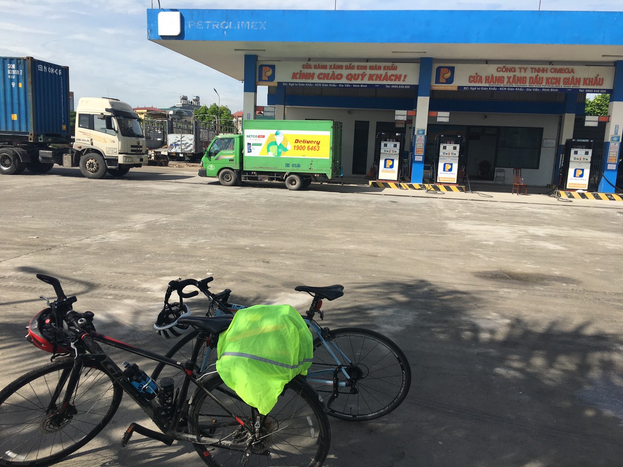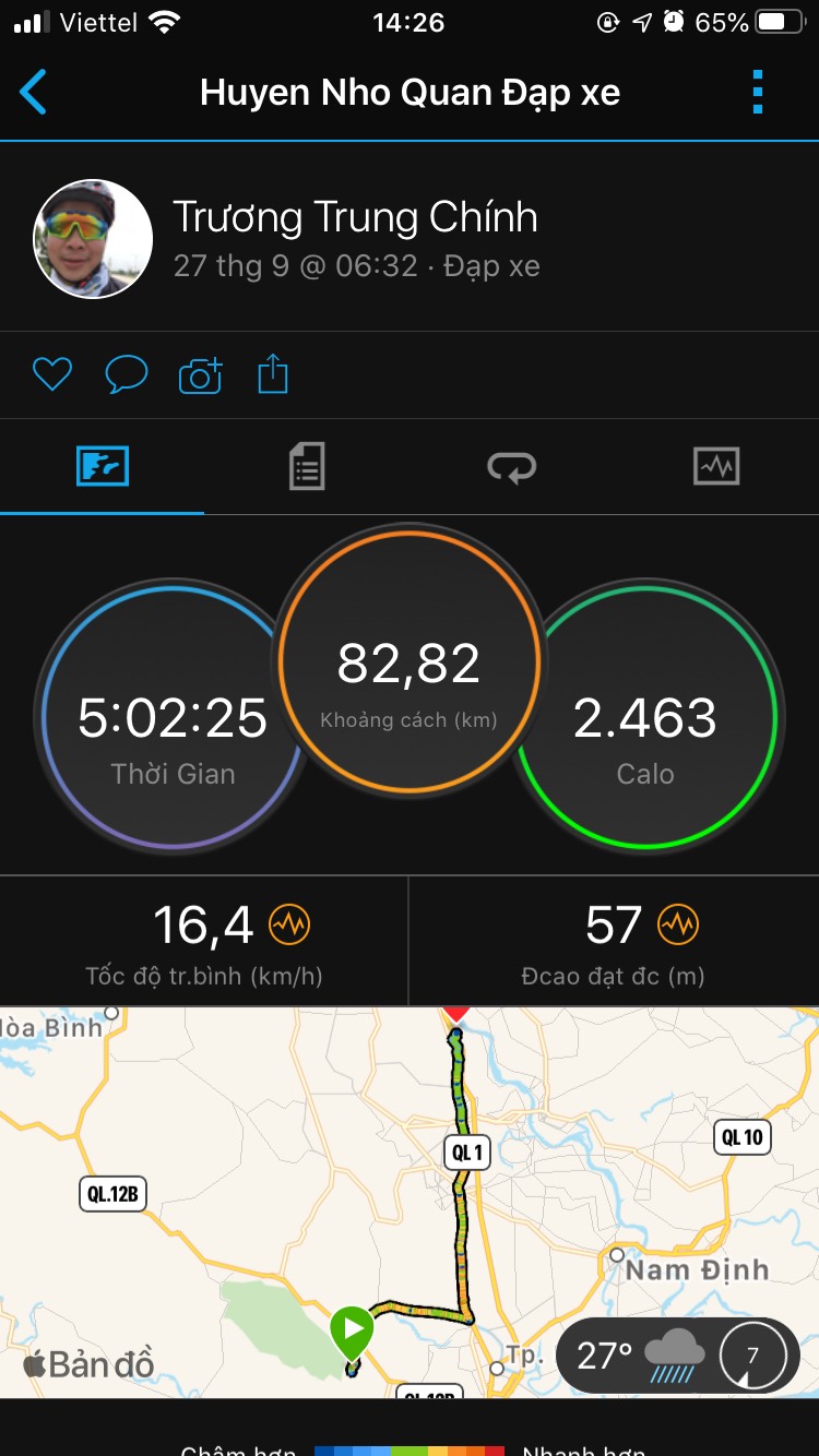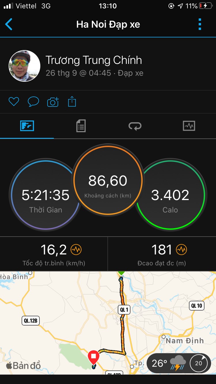 - 7h45' sáng chúng tôi dừng chân ở Phủ Lý nghỉ khoảng 30' hai anh em lấy thanh năng lượng (hammer bar) ra ăn, để bổ sung năng lượng vì chặng đường còn gần 60km mới đến đích. Chúng tôi đạp xe cứ khoảng 30km thì nghỉ khoảng 20-30', trong chuyến hành trình đi vào Cúc Phương hai anh em bị đi nhầm đường mất khoảng hơn 3km do không chịu kiểm tra google map.