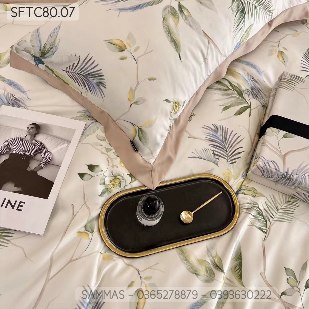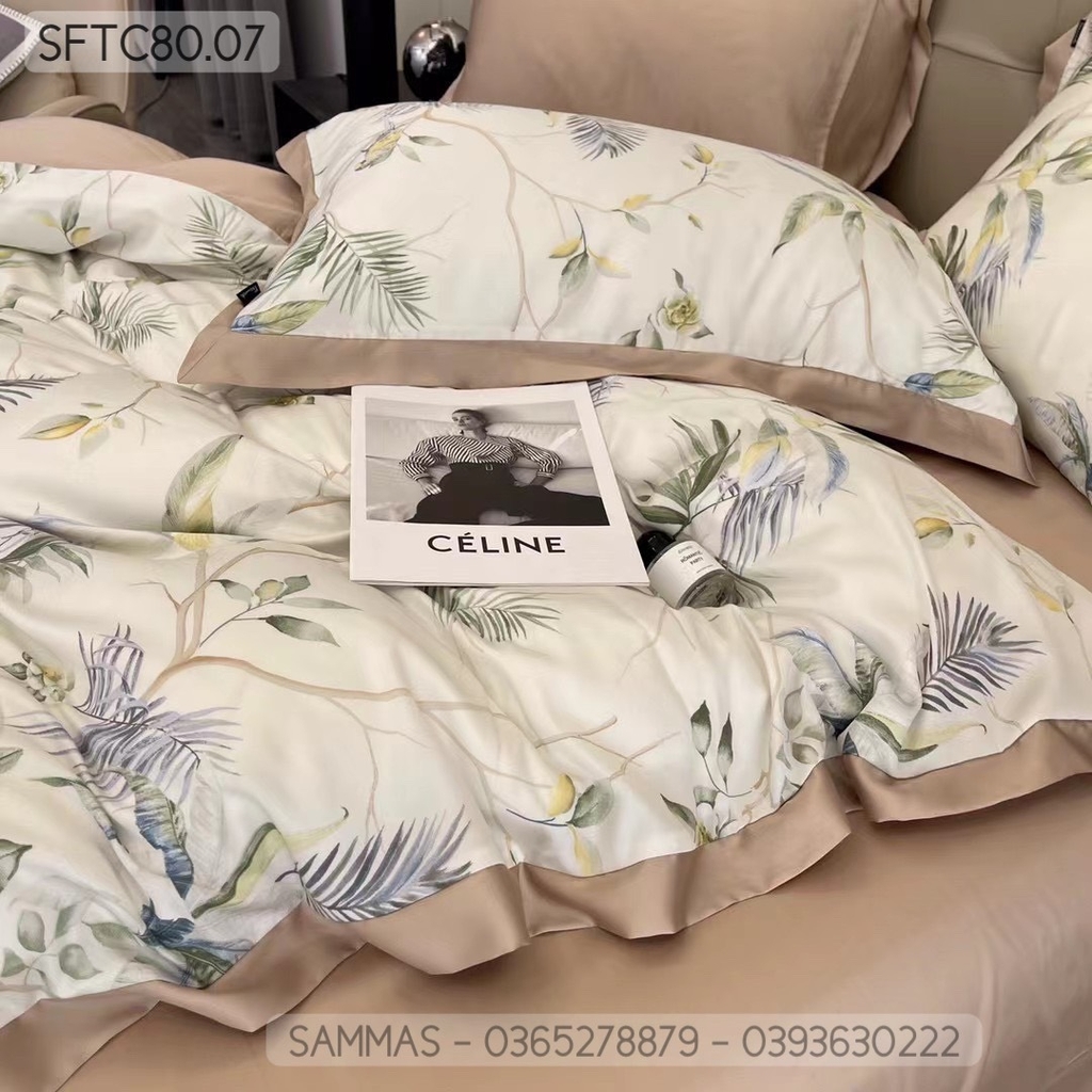 Họa tiết in hoa mềm mại nổi bật trên nền chất liệu lụa tencel nhẹ mát tạo sự sang trọng và đẳng cấp riêng mà chỉ tencel cao cấp mới có