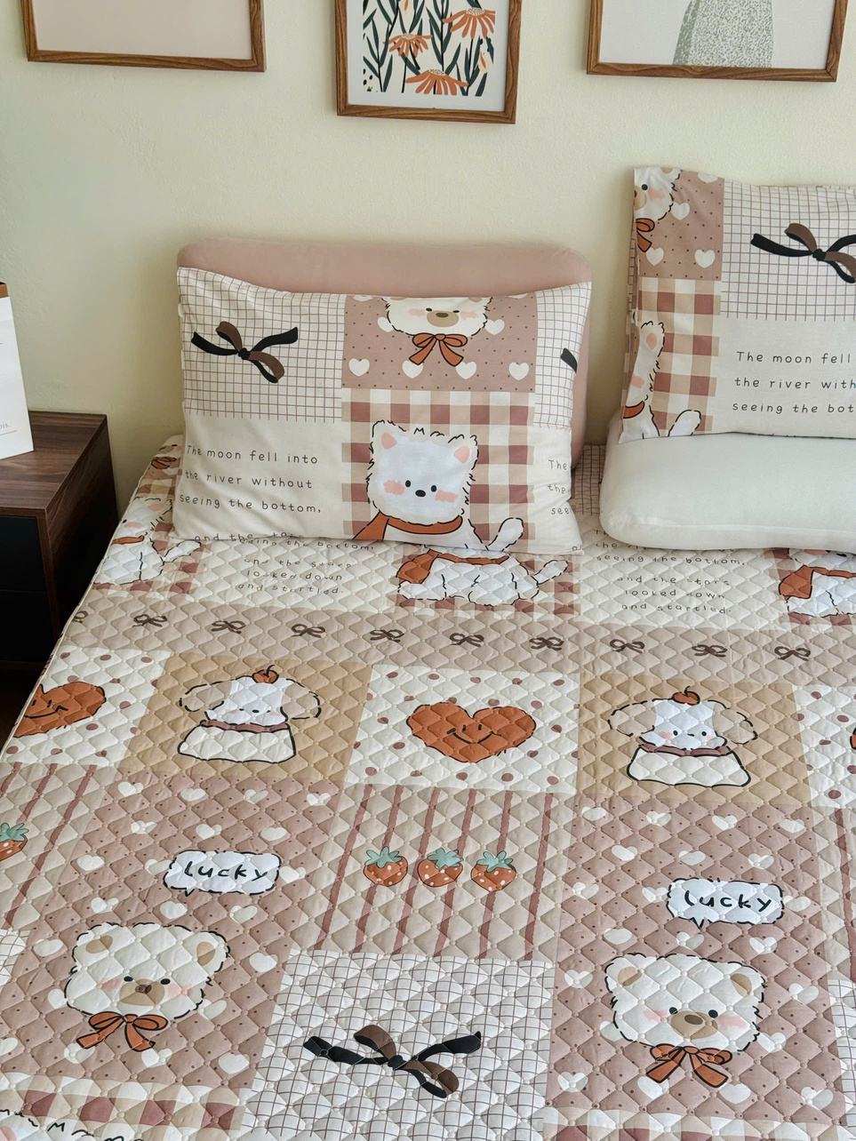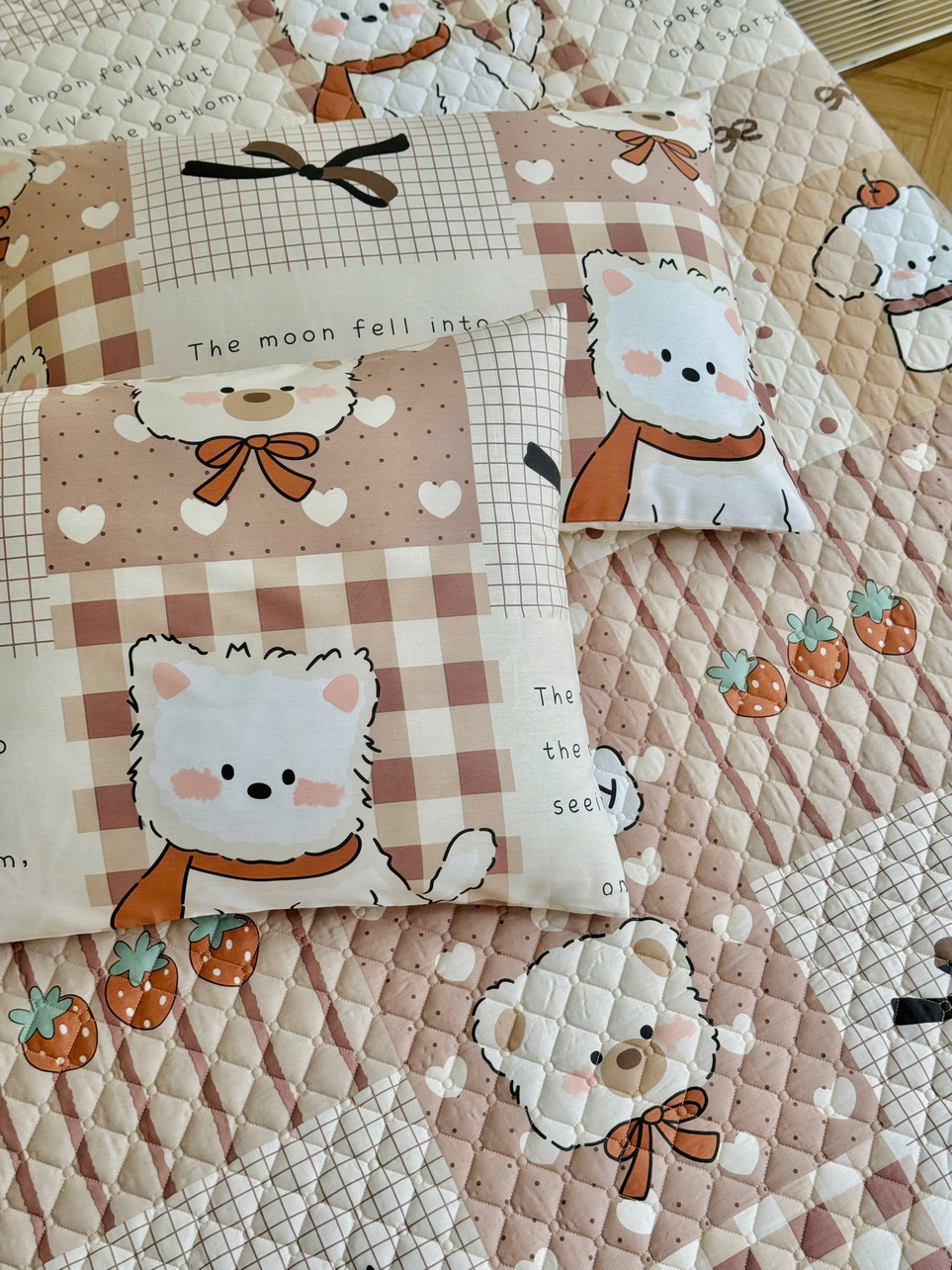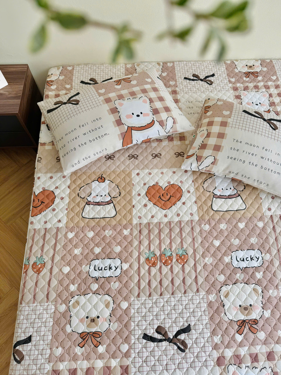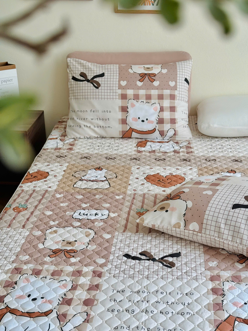 Set ga gối chần bông (Cún khăn nâu) - SGGCB343