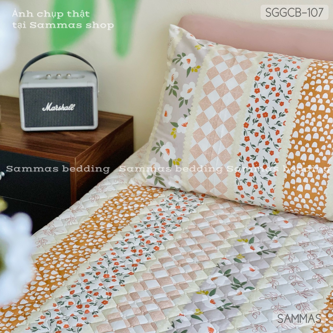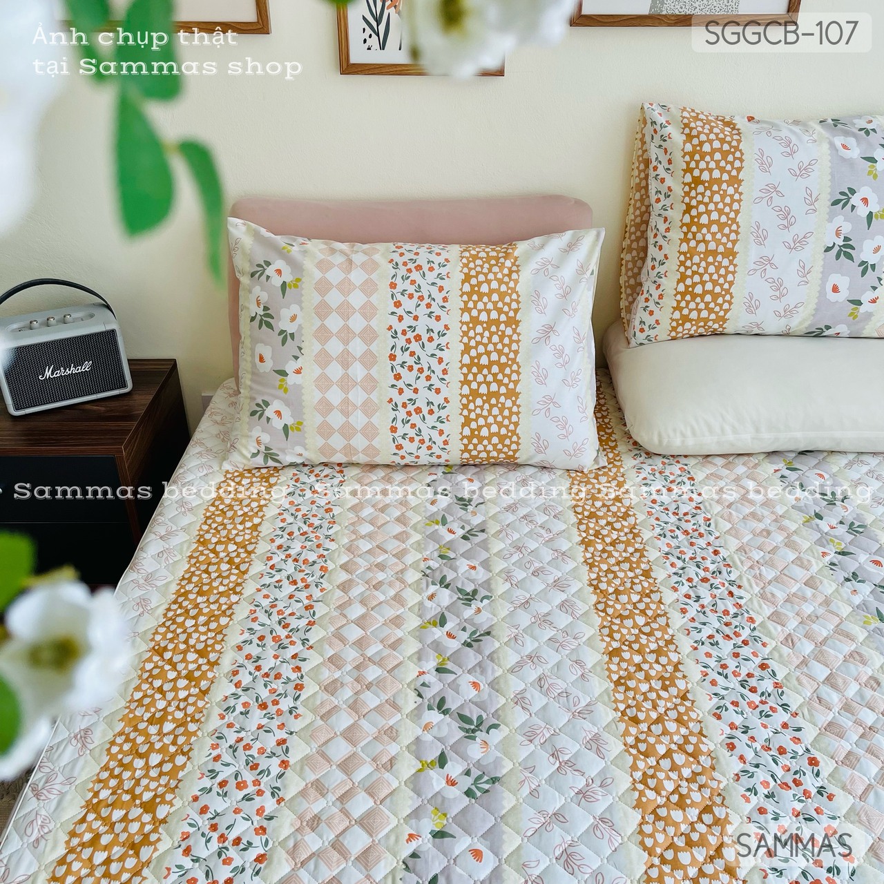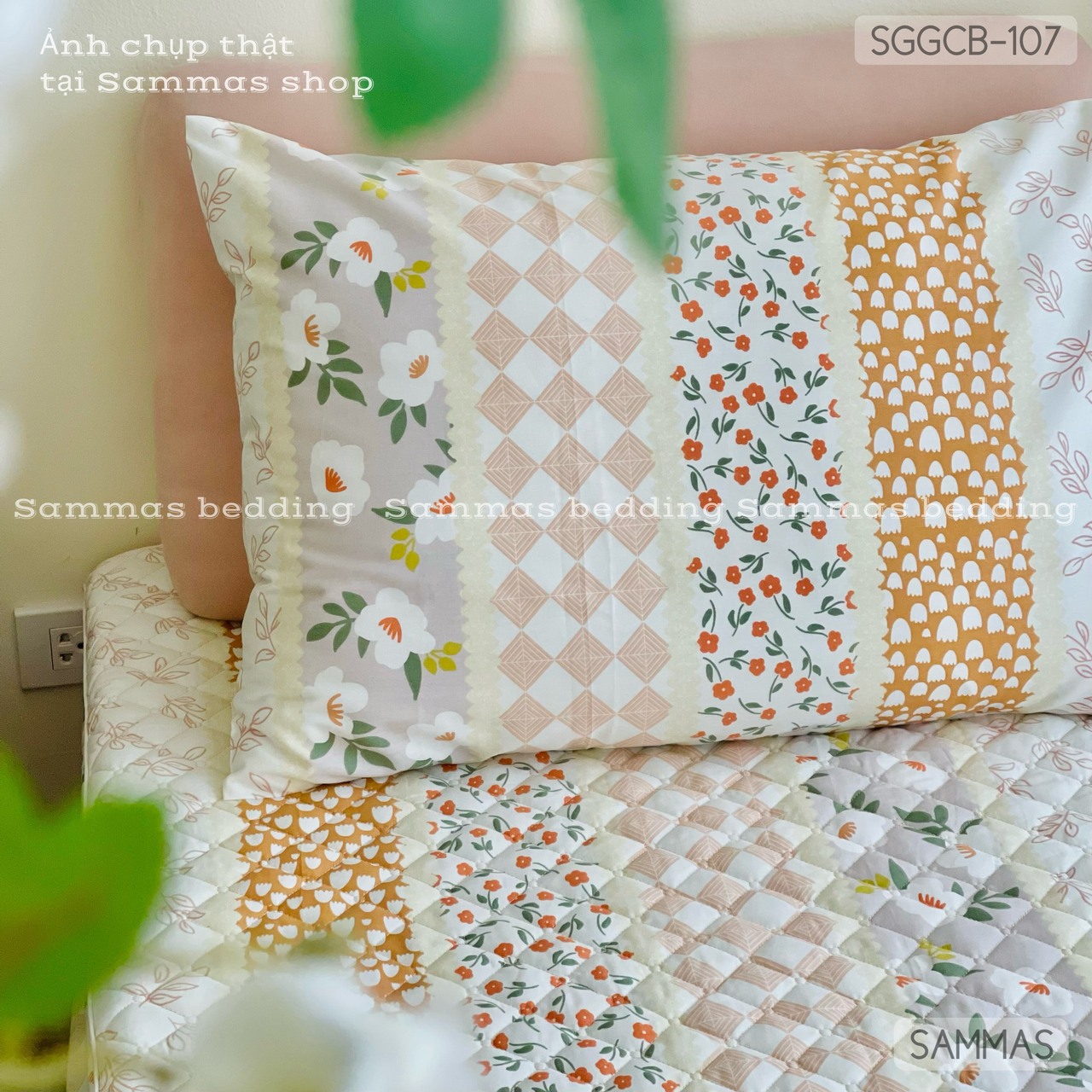 Set ga gối chần bông (Hoa nhí sọc) - SGGCB107