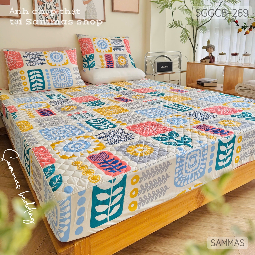 Giới thiệu tới mọi người Set ga gối chần bông vải Cotton Organic với 100% cotton (không pha poly)