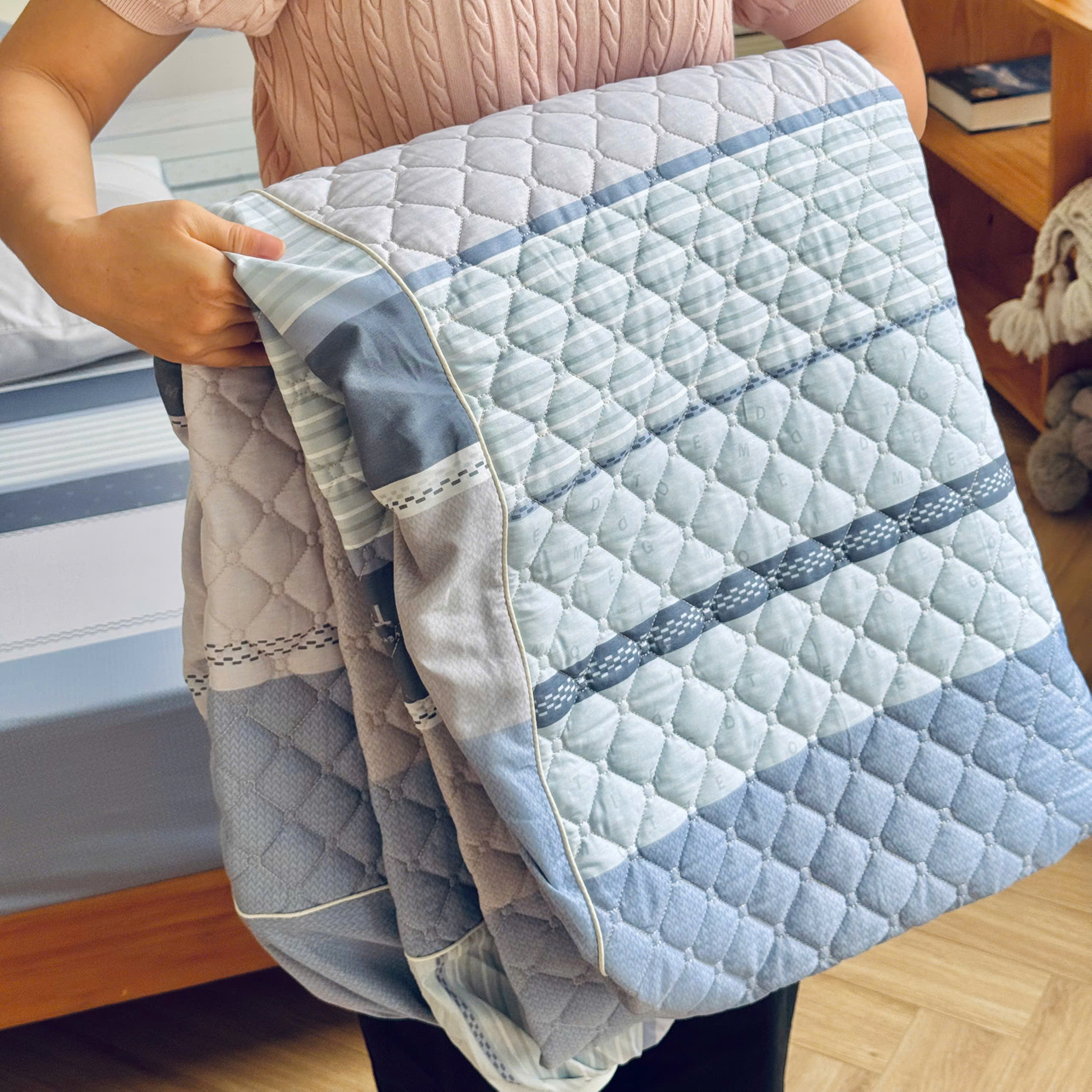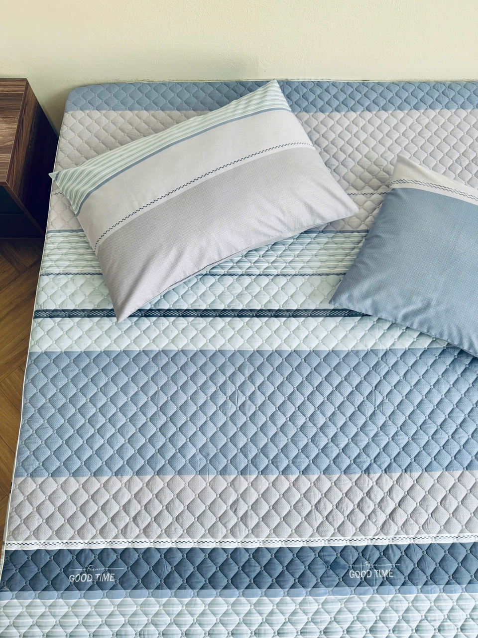 Set ga gối chần bông (Kẻ xanh) - SGGCB345