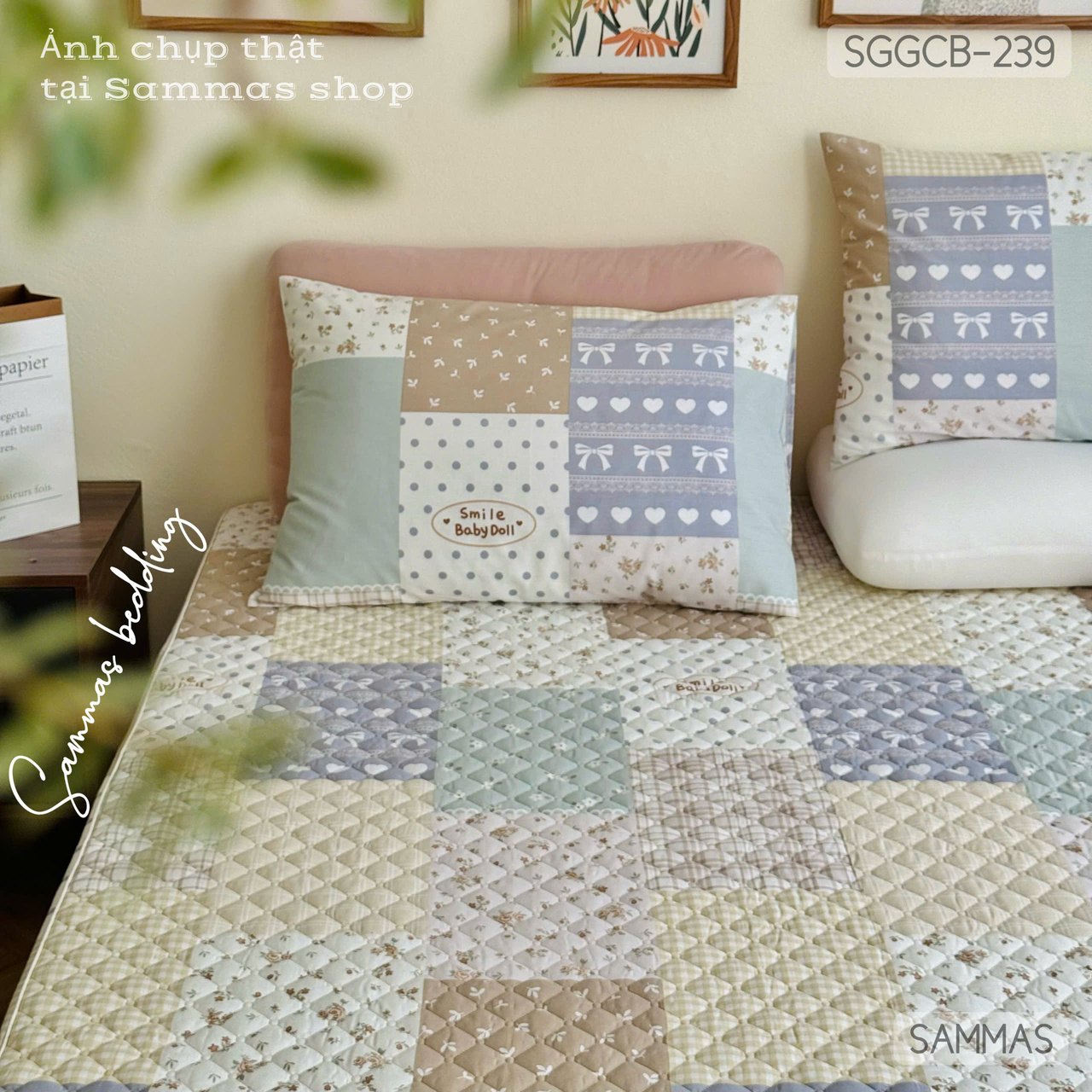 Set ga gối chần bông (Nhí Vintage quilt) - SGGCB239