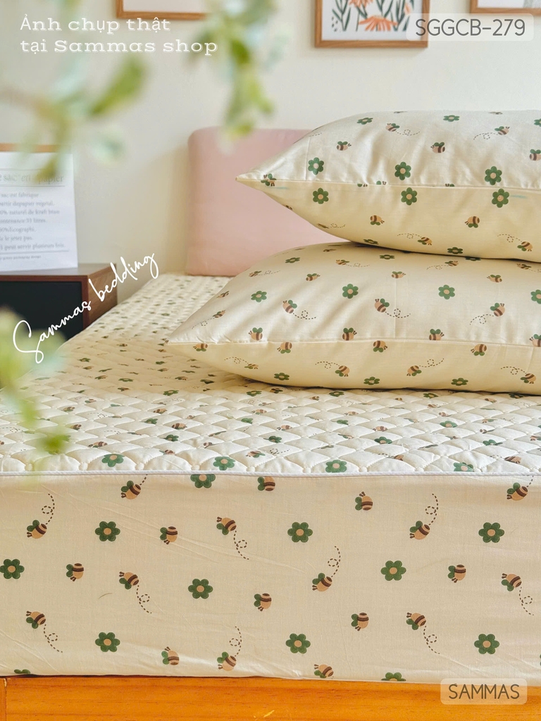 Giới thiệu tới mọi người Set ga gối chần bông vải Cotton Organic với 100% cotton (không pha poly)
