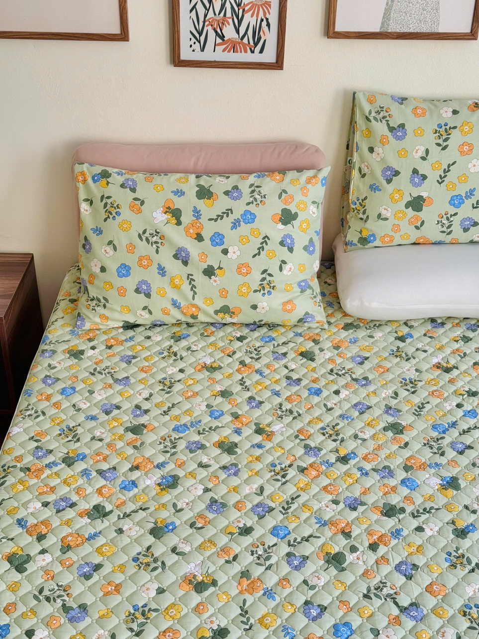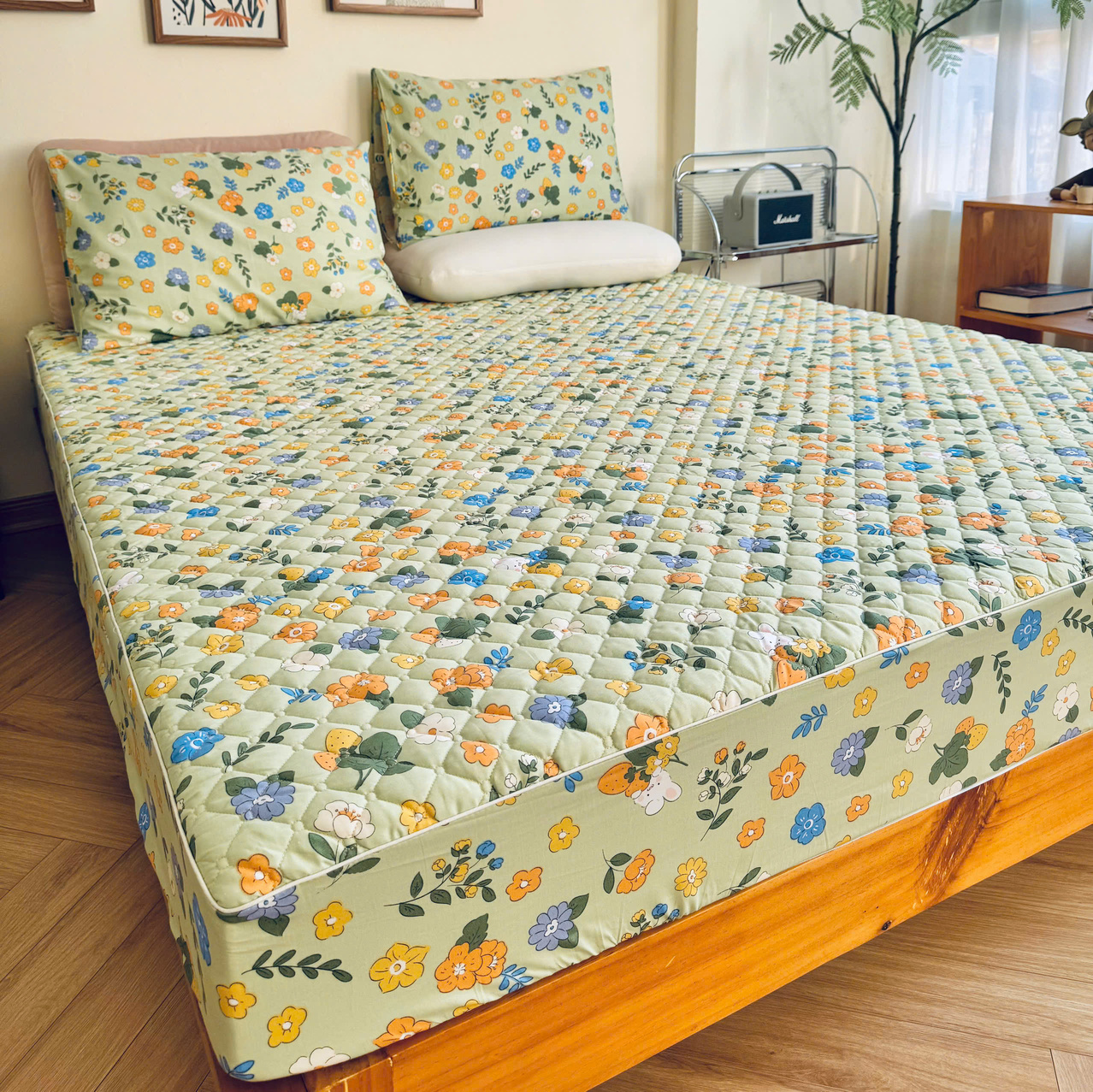 Giới thiệu tới mọi người Set ga gối chần bông vải Cotton Organic với 100% cotton (không pha poly)