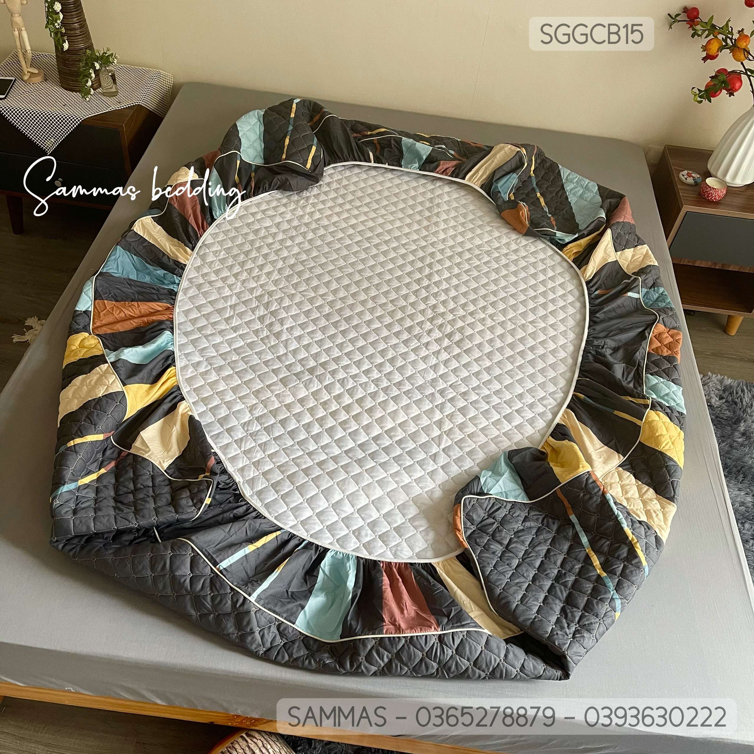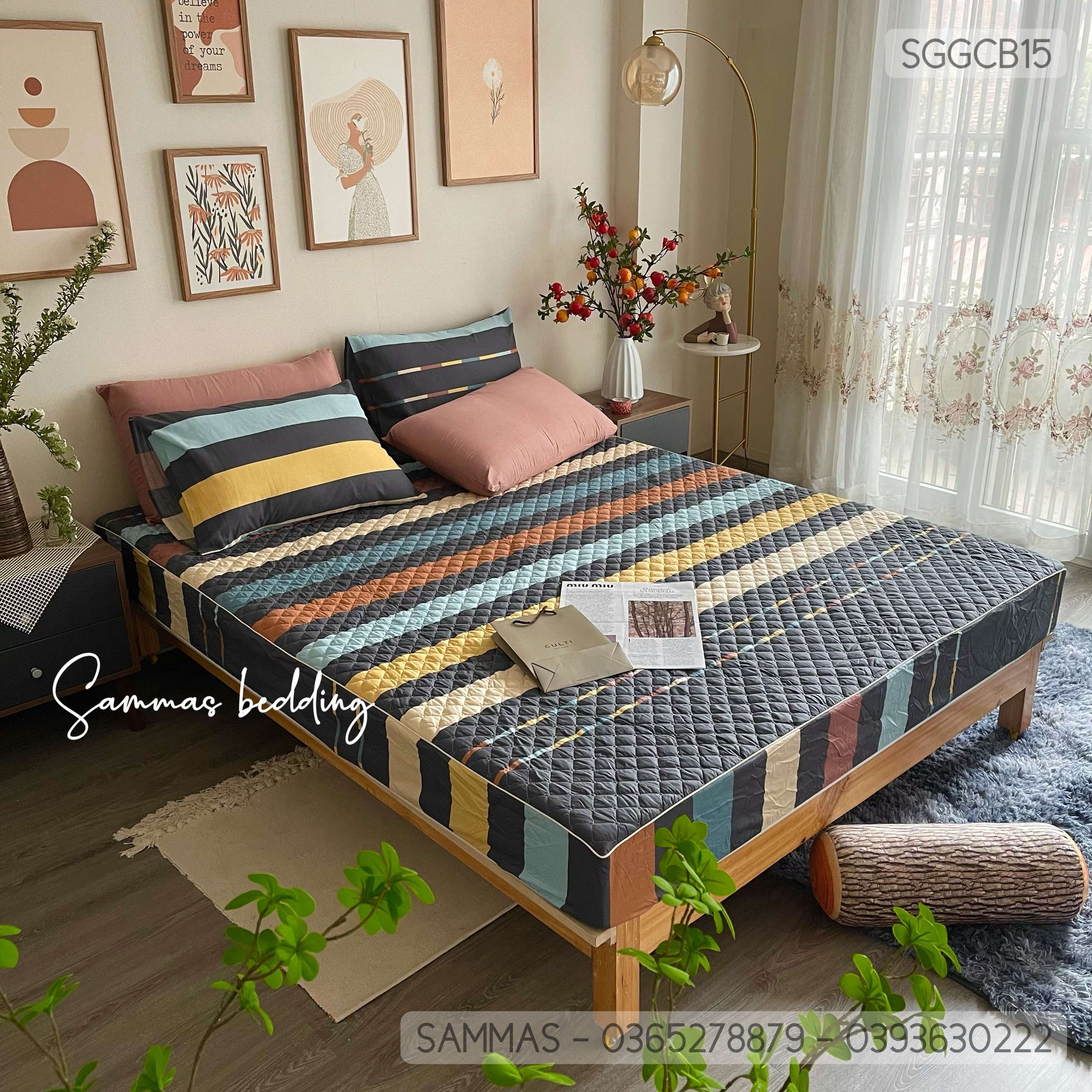 Gồm: 1 ga chun chần bông + 2 vỏ gối nằm