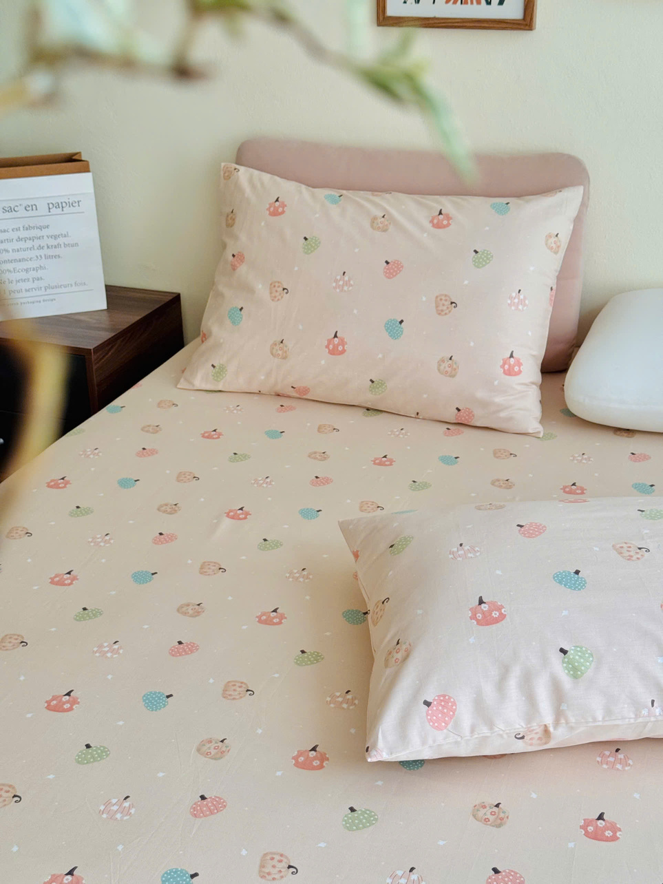 Set ga gối cotton - Bí ngô hồng - SGGCT364