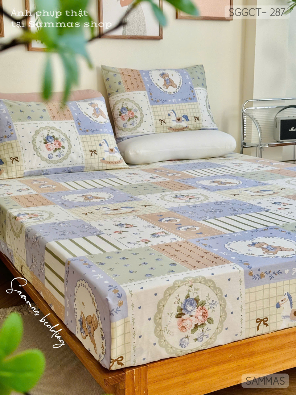 Set ga gối cotton - Gấu Vintage Korea - SGGCT287