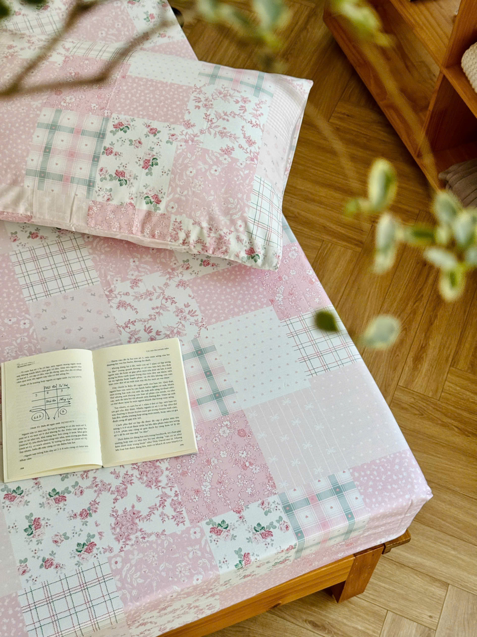 Set ga gối cotton - Quilt hồng - SGGCT366