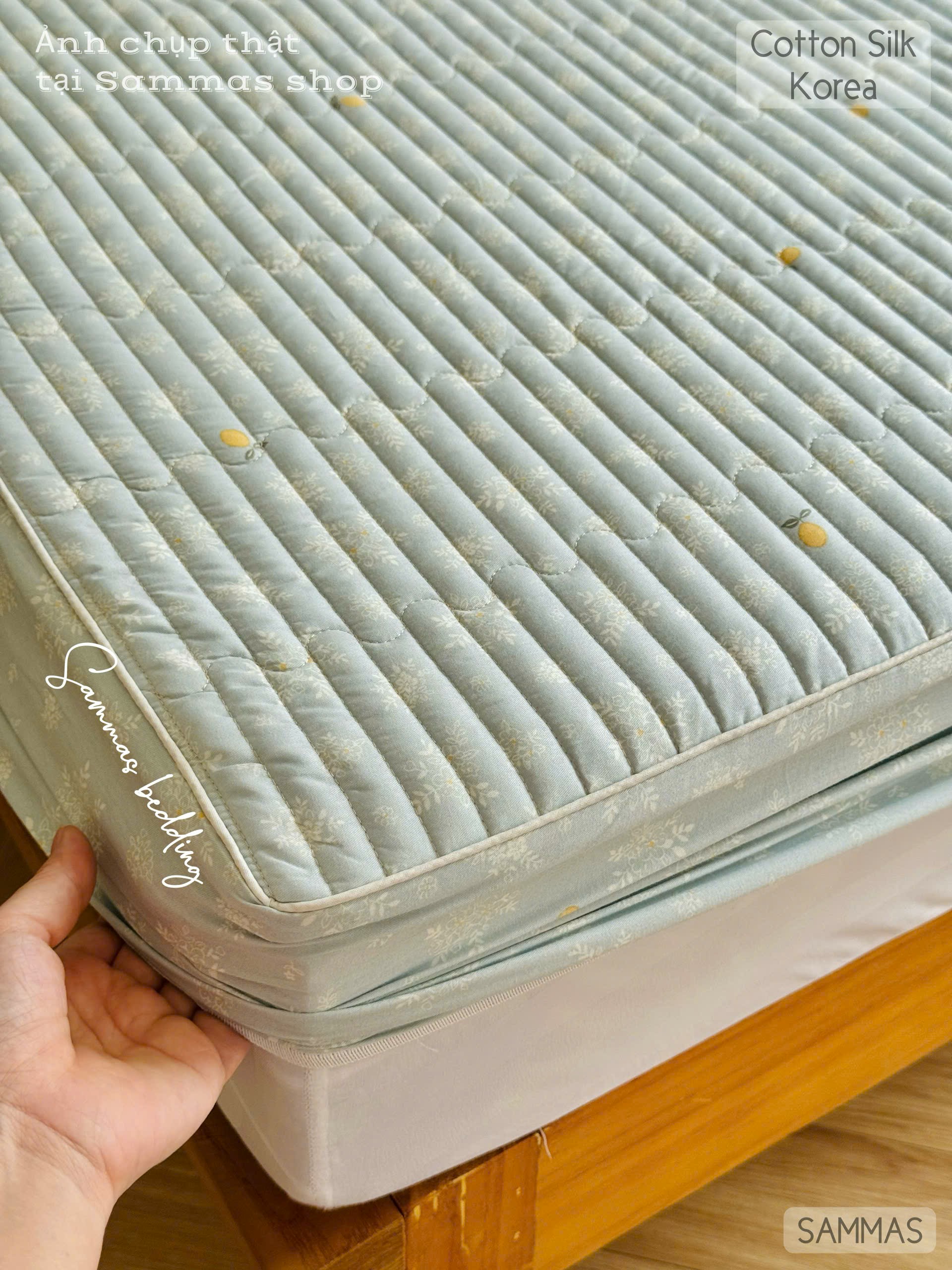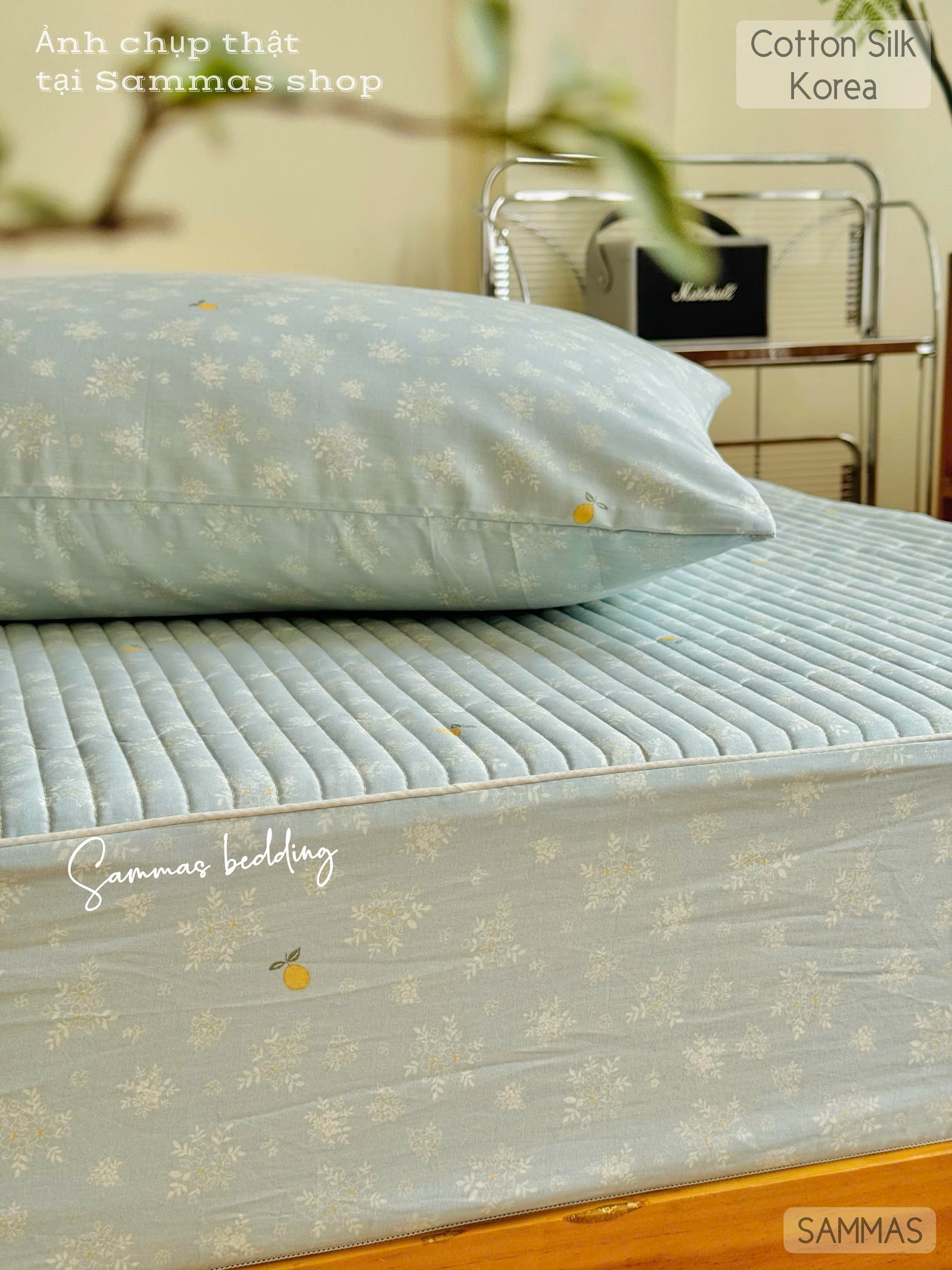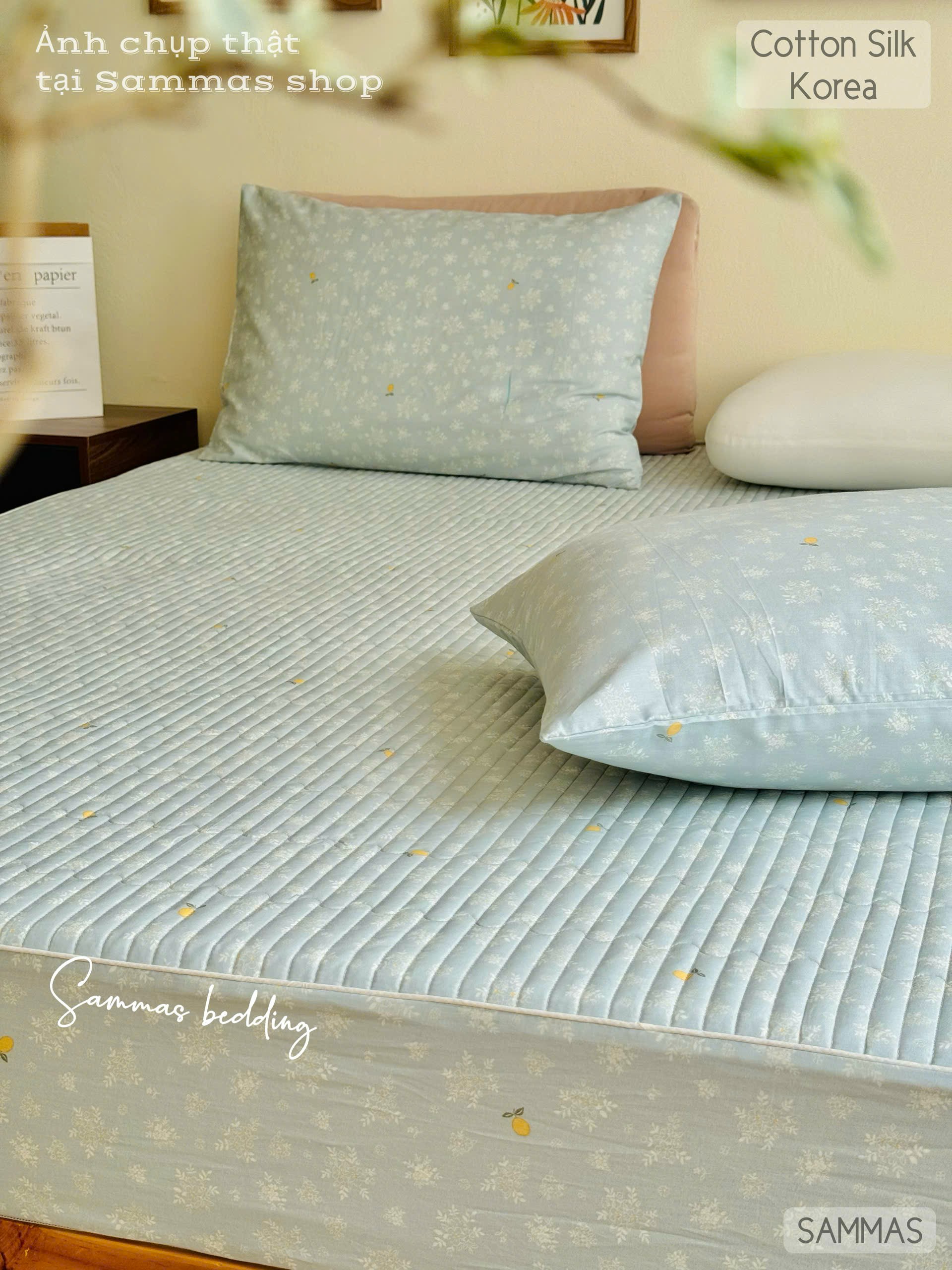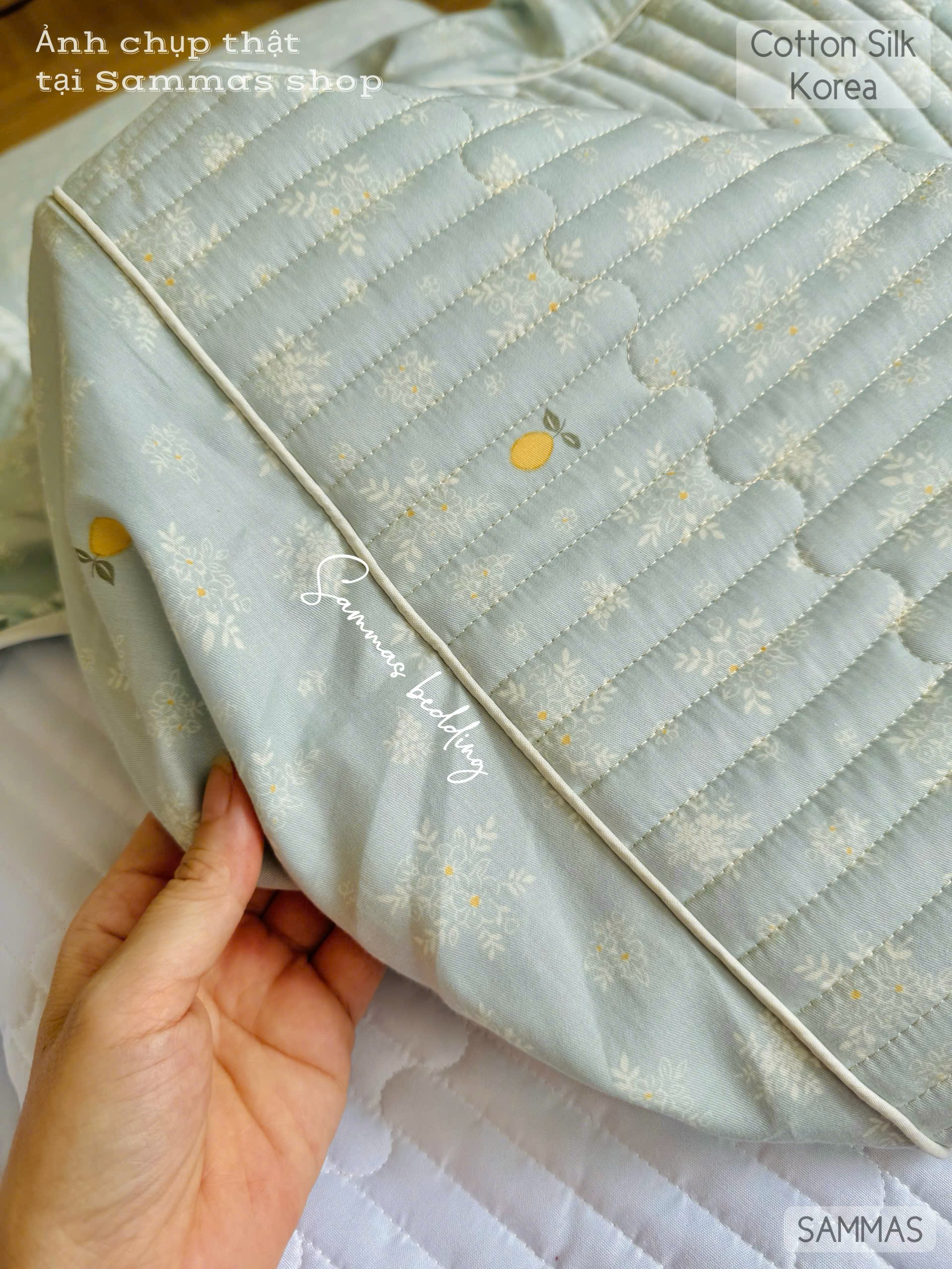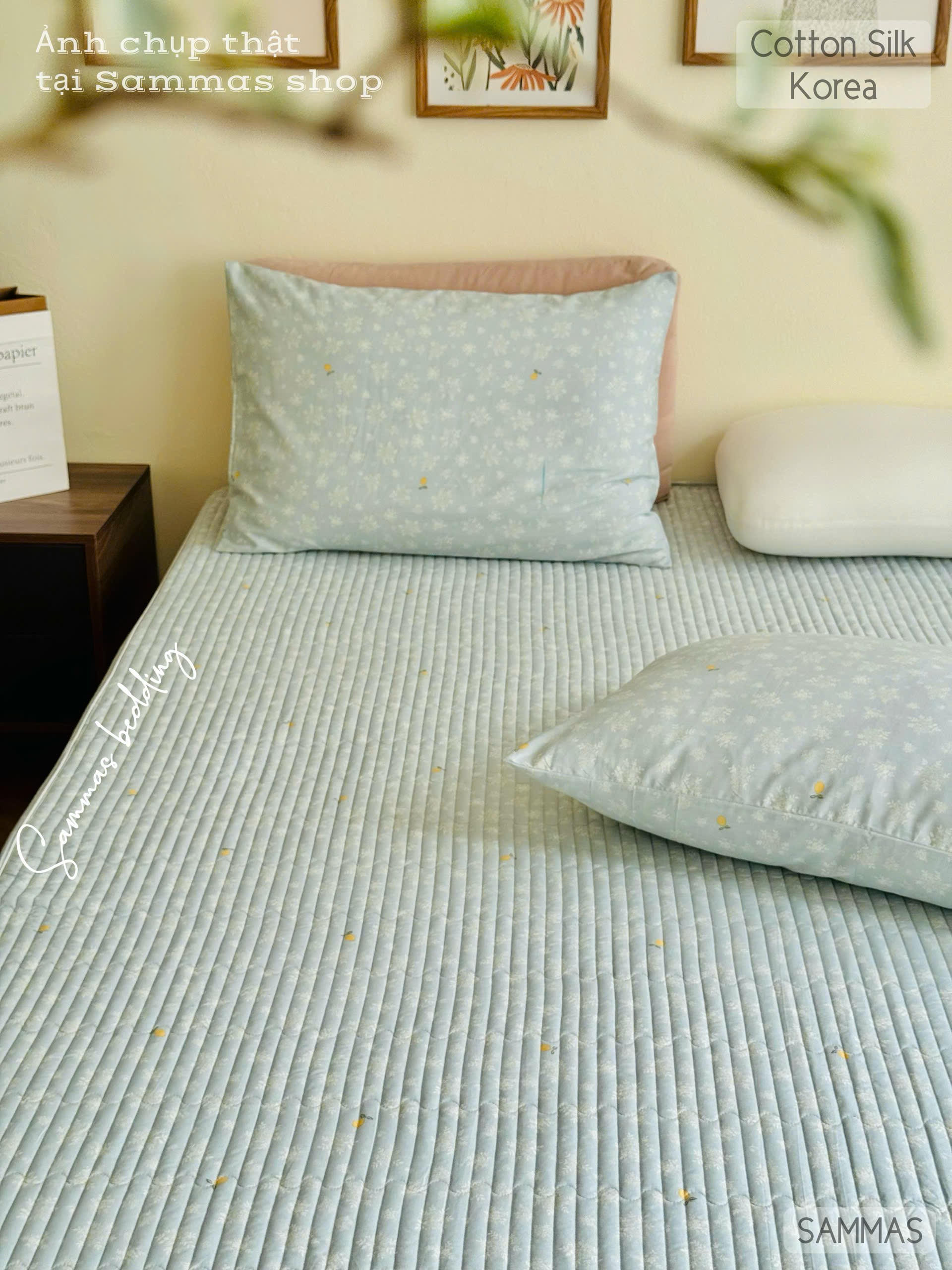 Giới thiệu tới mọi người Set ga gối chần bông vải cotton silk Hàn với 100% cotton (không pha poly )