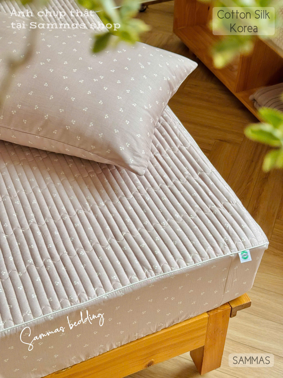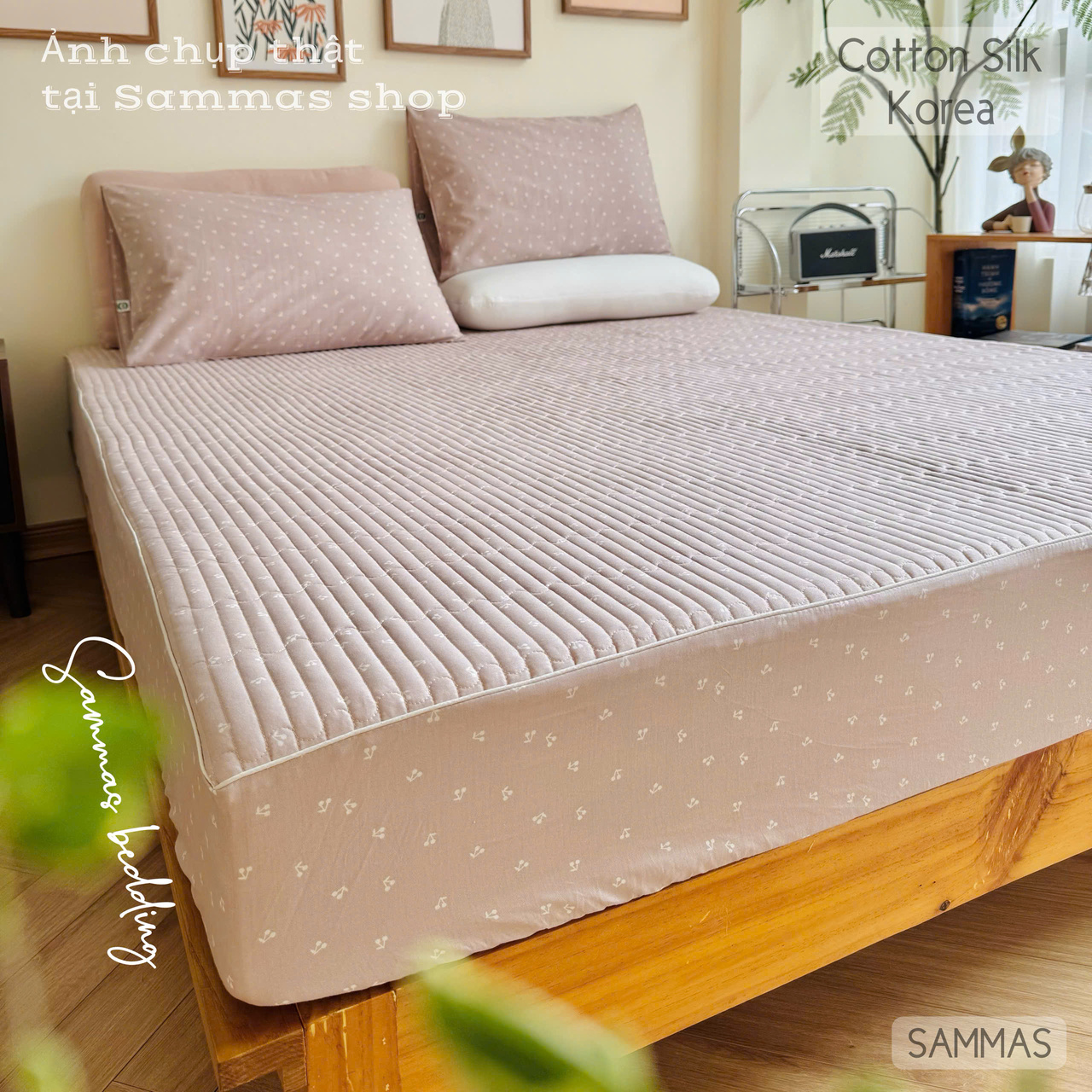 Giới thiệu tới mọi người Set ga gối chần bông vải cotton silk Hàn với 100% cotton (không pha poly )