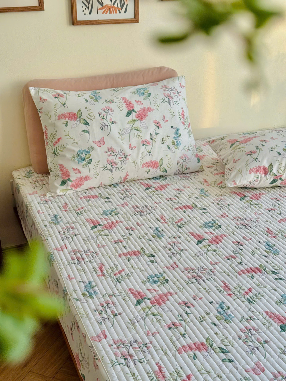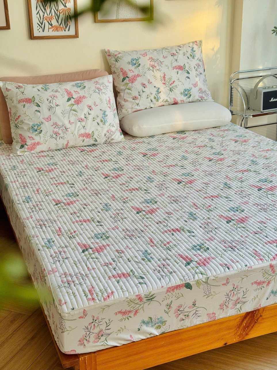 Giới thiệu tới mọi người Set ga gối chần bông vải cotton silk Hàn với 100% cotton (không pha poly )