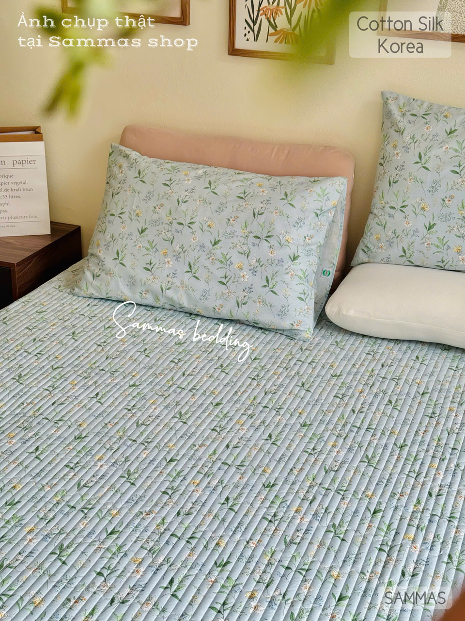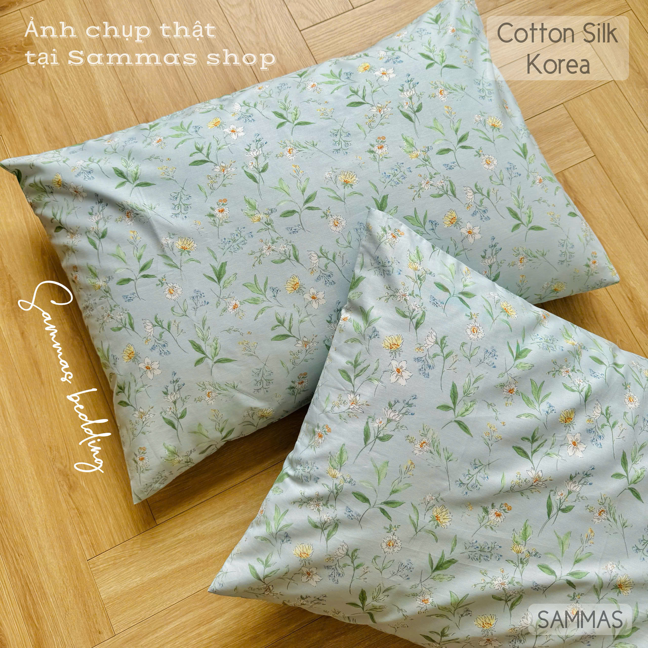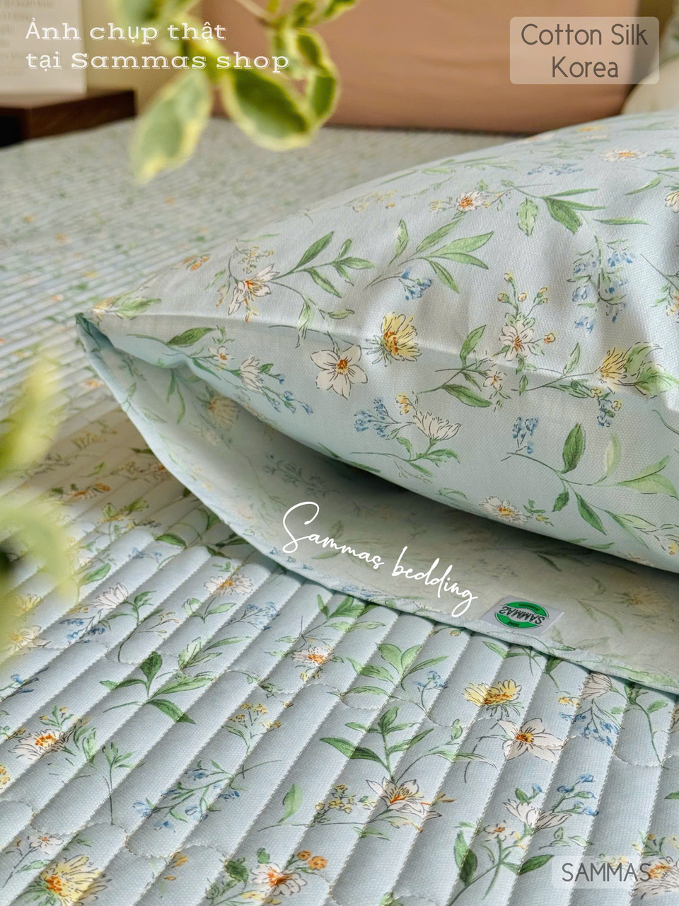 Set ga gối cotton silk Hàn - Daisy (xanh) - SGGSH06