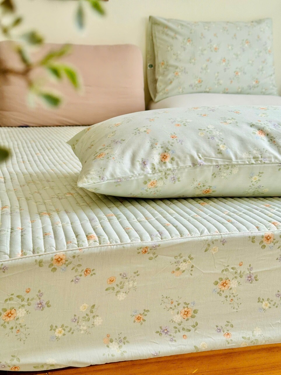 Set ga gối cotton silk Hàn - Hoa bạc hà - SGGSH45