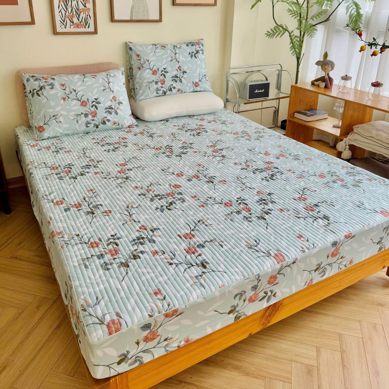 Giới thiệu tới mọi người Set ga gối chần bông vải cotton silk Hàn với 100% cotton (không pha poly )