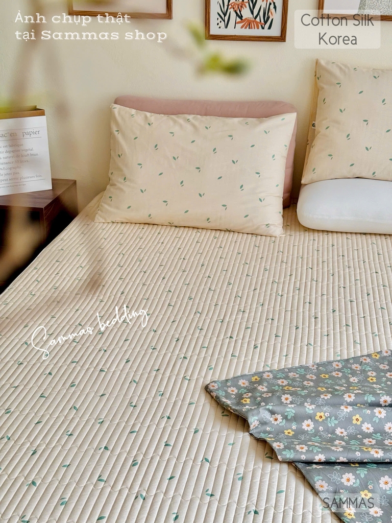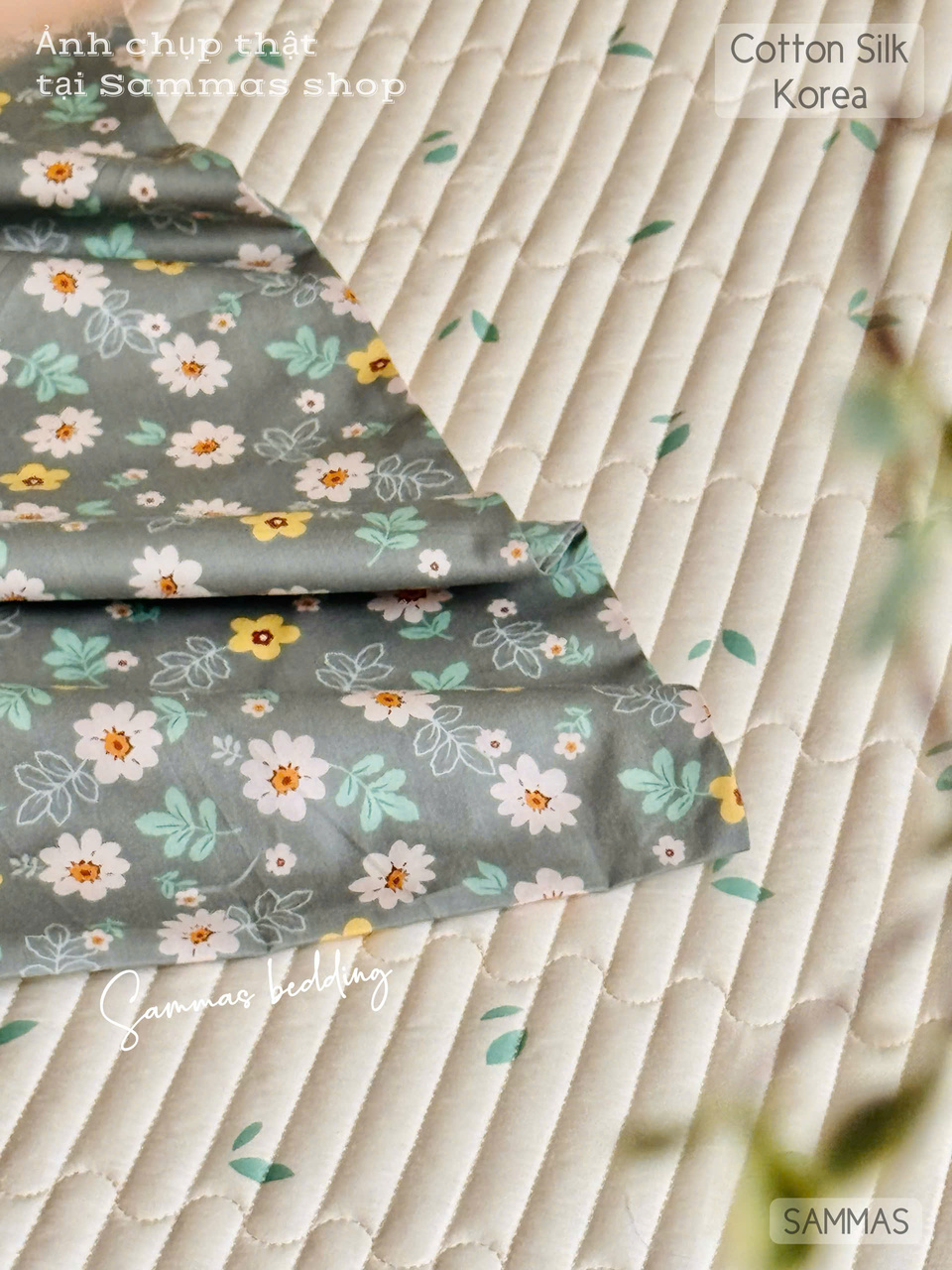 Giới thiệu tới mọi người Set ga gối chần bông vải cotton silk Hàn với 100% cotton (không pha poly )