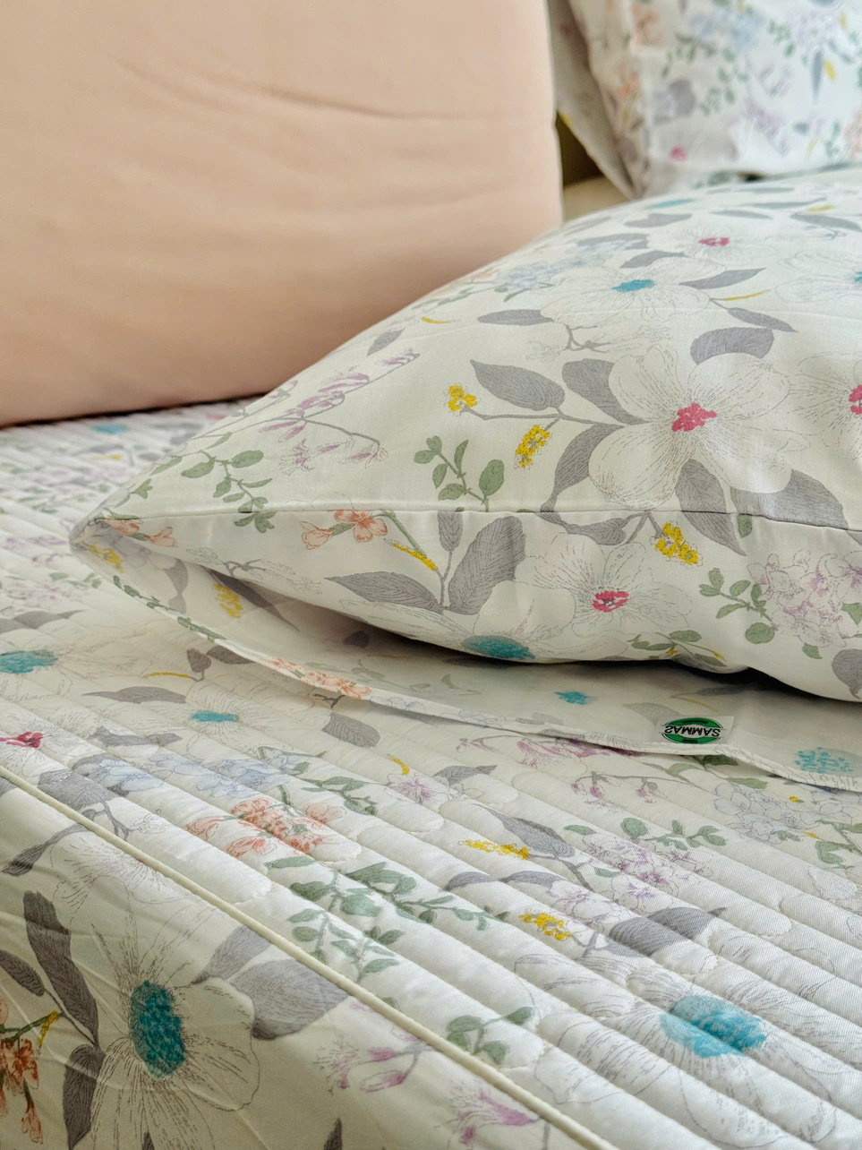 Giới thiệu tới mọi người Set ga gối chần bông vải cotton silk Hàn với 100% cotton (không pha poly )