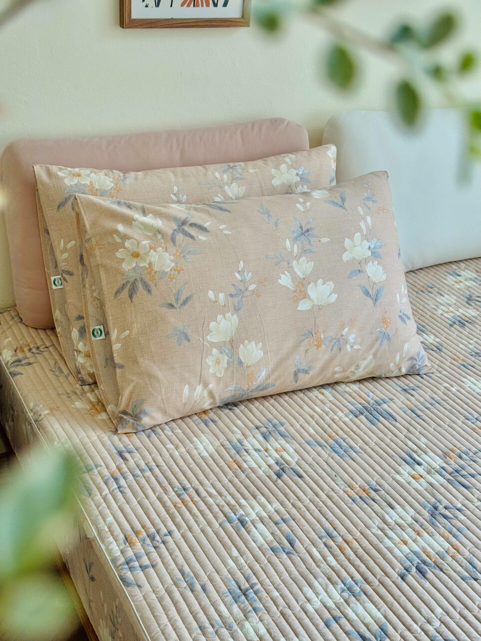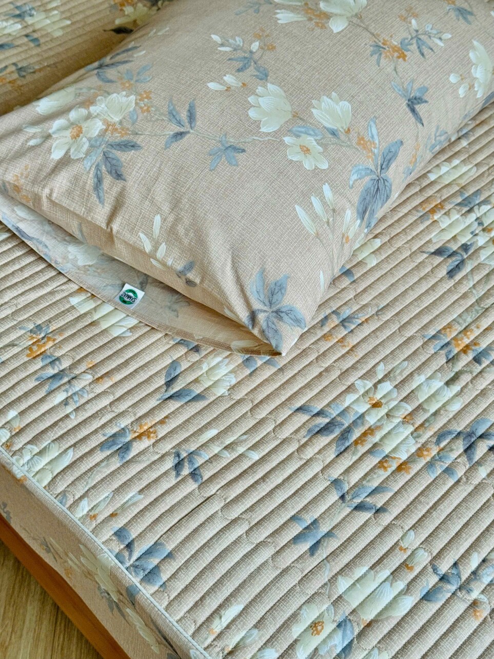 Giới thiệu tới mọi người Set ga gối chần bông vải cotton silk Hàn với 100% cotton (không pha poly )