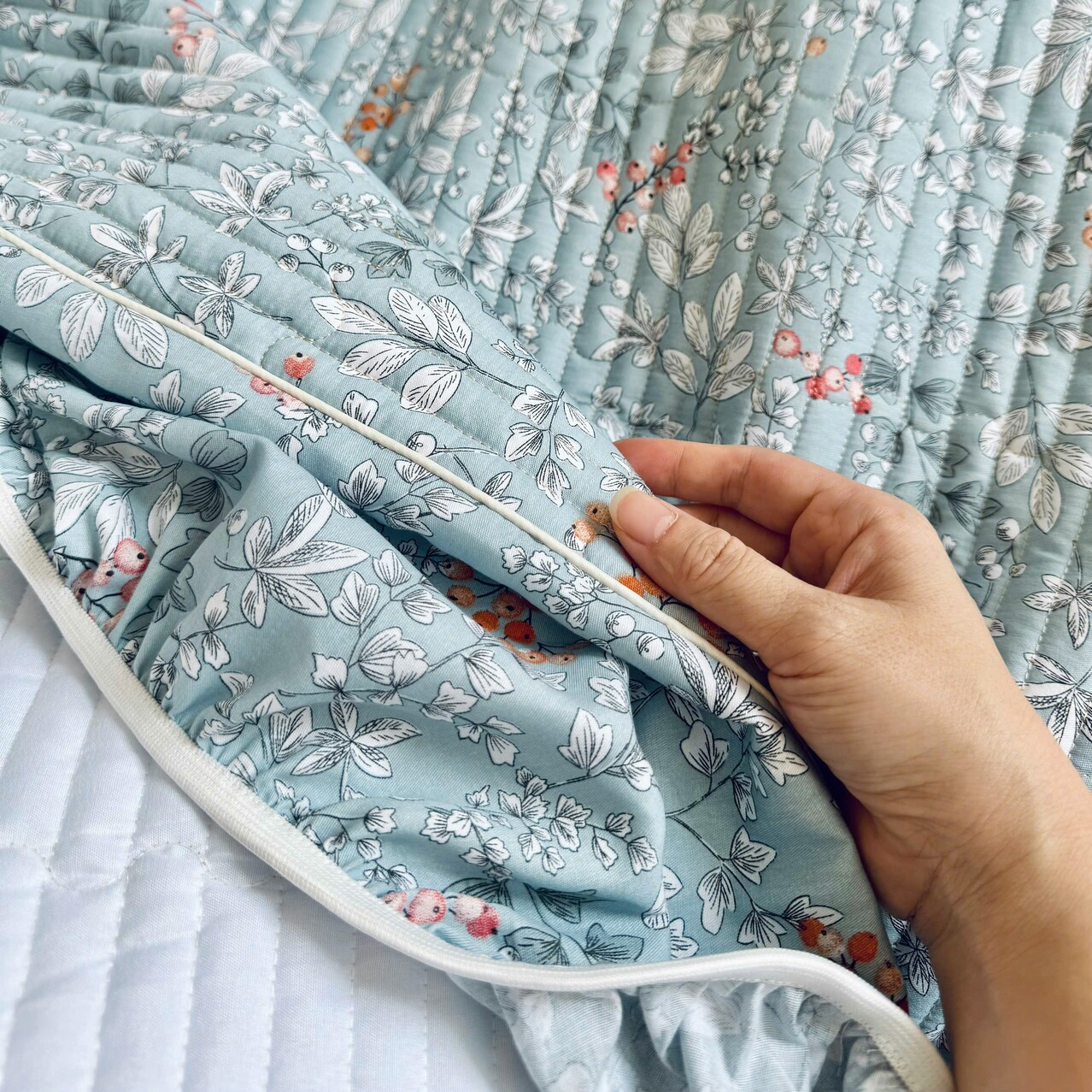 - Ga chun được chần bông tỉ mỉ, với lớp bông dày dặn và mềm, không bị xô khi giặt.
