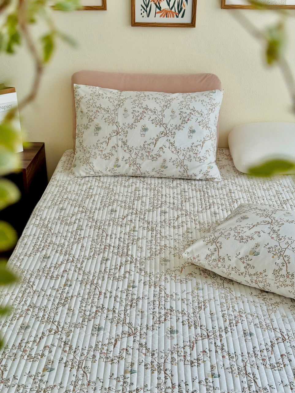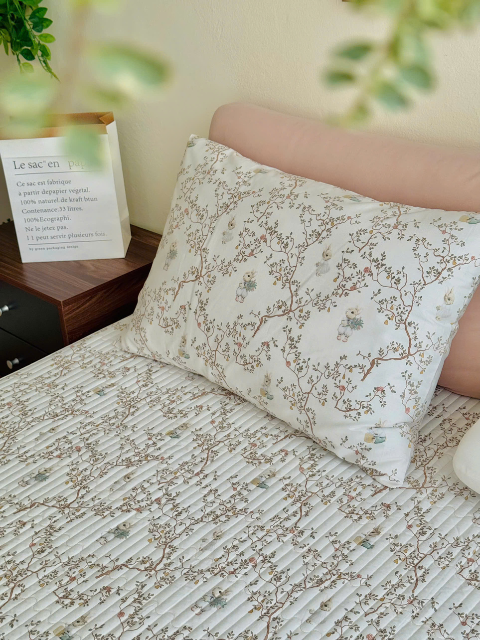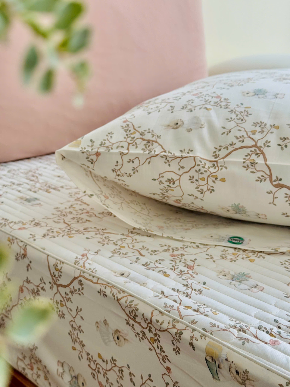 Set ga gối cotton silk Hàn - Thỏ cổ tích - SGGSH55