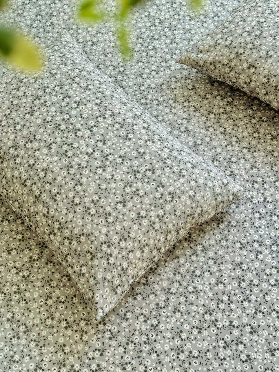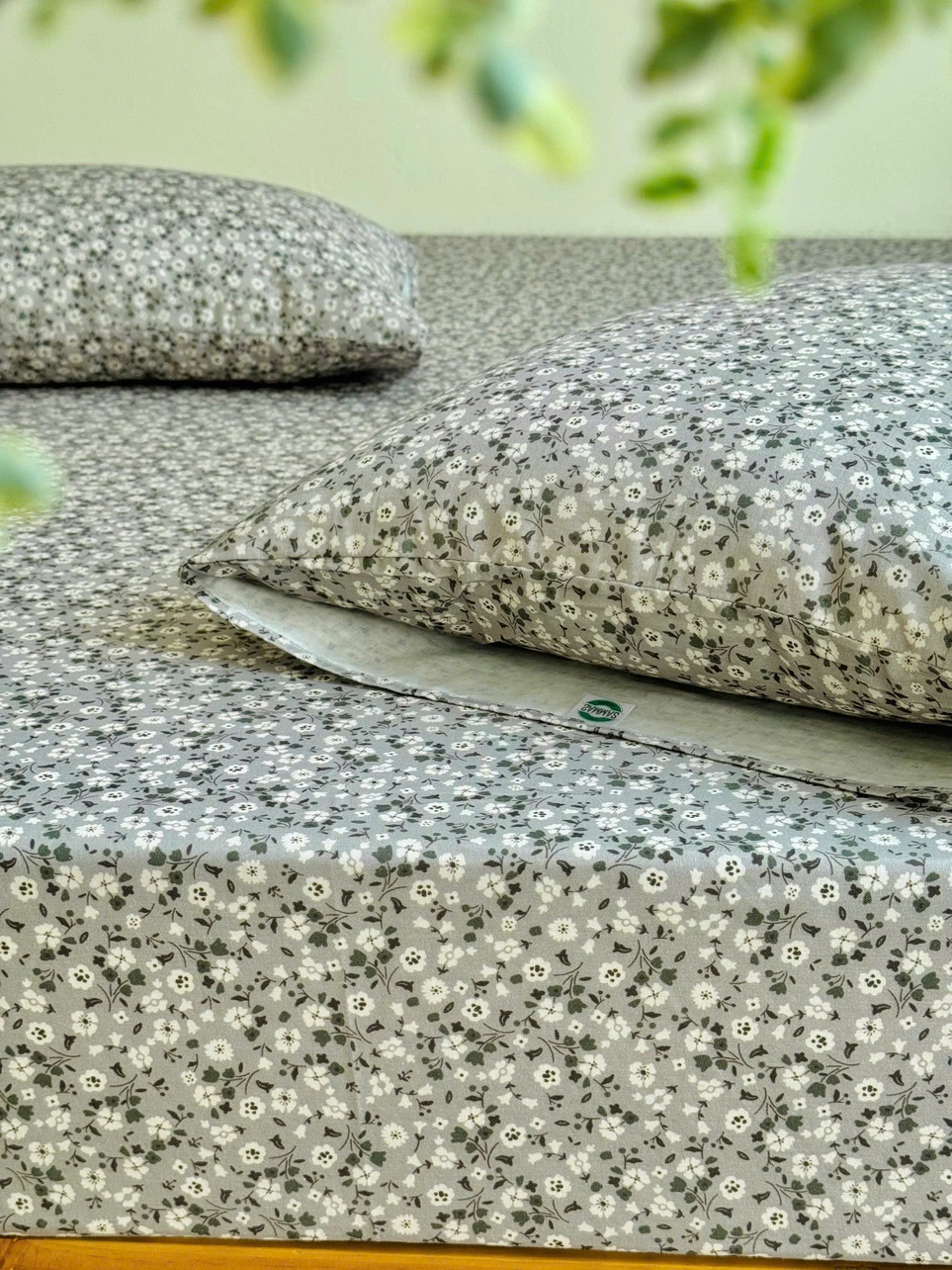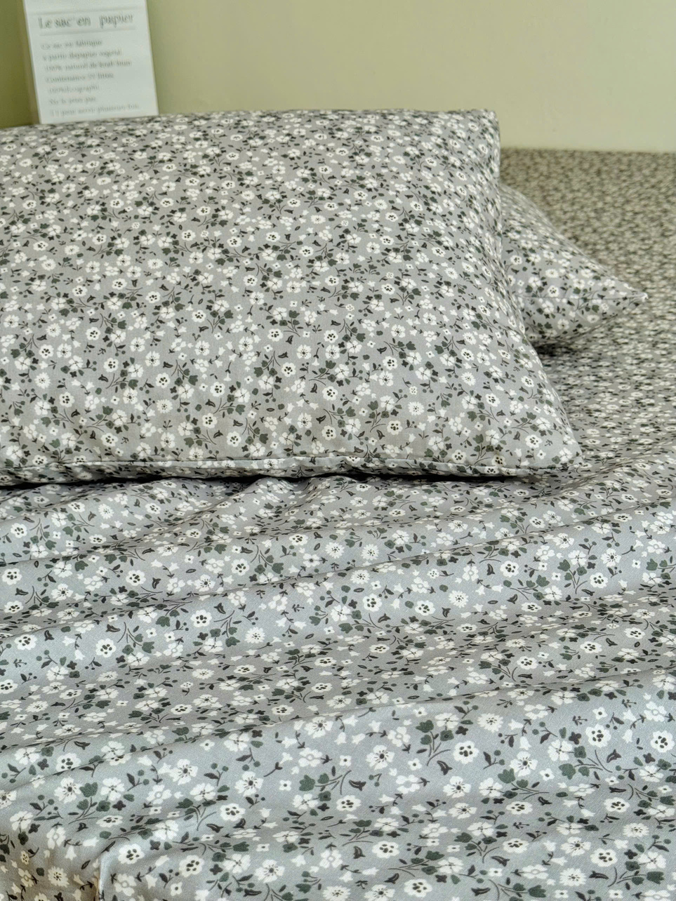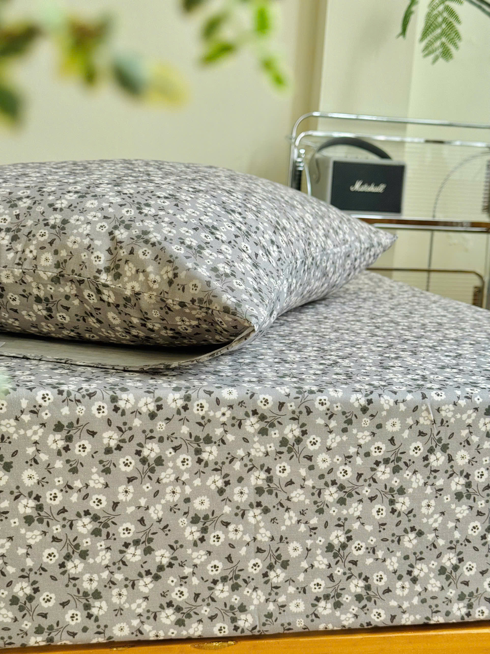 Set ga gối Linen - Hoa nhí xám - SGGL69
