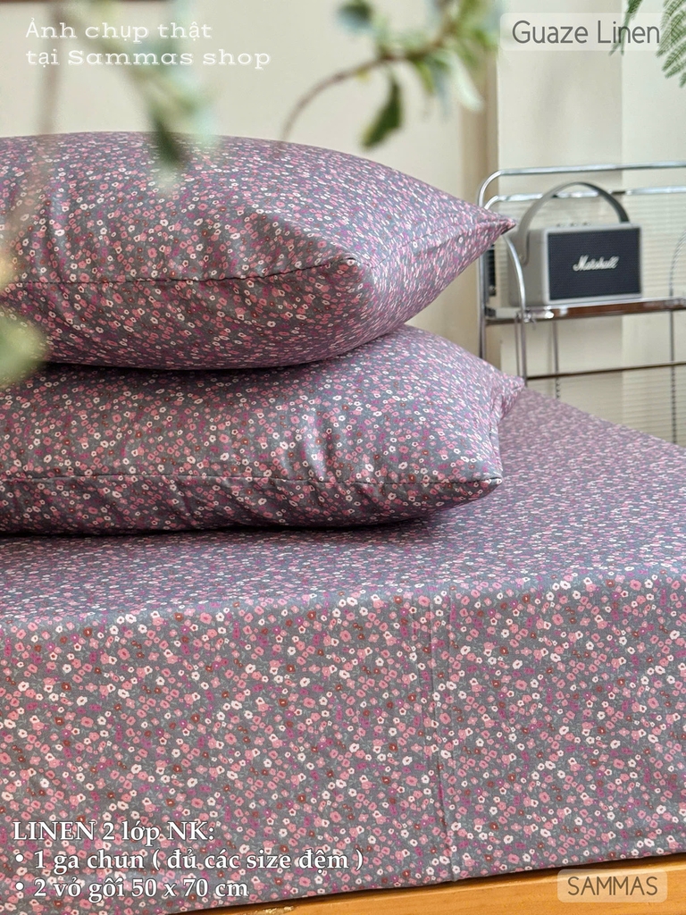 Set ga gối Linen - Hoa tím - SGGL64